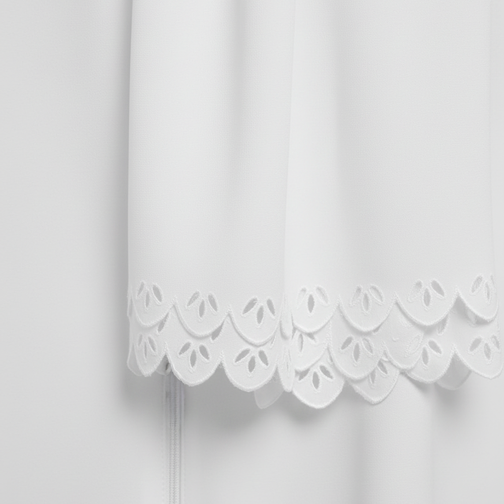 Kendinden Şallı Namaz Elbisesi Beyaz Renk Kendinden şallı, pratik ve şık tasarımıyla ibadet anlarını kolaylaştıran özel namaz elbisesi! 1.kalite pamuk aerobin kumaştan üretilmiştir; kırışmaz, ütü istemez, terletmez ve hafif yapısıyla gün boyu rahat kullanım sağlar. Kol kısmı lastiklidir ve kullanım kolaylığı sağlar. Boydan fermuarlı ön tasarım sayesinde hızlıca giyilir. Kendinden şallı modelinde, şal kenarında zarif dantel detayları bulunur. 1 Numara = 42 Beden  2 Numara = 44 Beden 3 Numara = 46 Beden  4 Numara = 48 Beden 5 Numara = 50 Beden 6 Numara = 52 Beden Bu özel tasarım 3 farklı kullanım alanı sunar: Namaz ve ibadetlerde, Umre ve hac ziyaretlerinde, Kırışmaz yapısı sayesinde ferace olarak günlük kullanımda. Rahat kesimi ve kapatıcı yapısıyla tesettüre tam uyumludur.