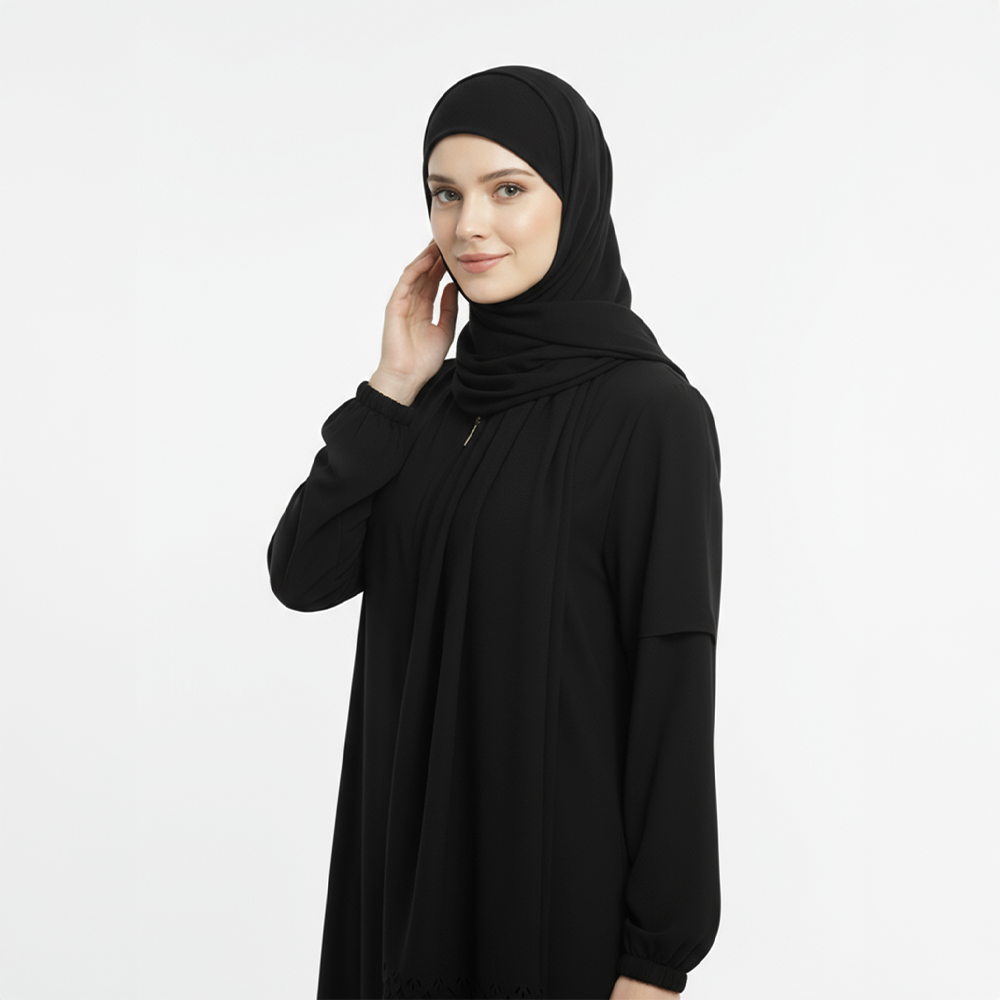 Kendinden Şallı Namaz Elbisesi Siyah Renk Kendinden şallı, pratik ve şık tasarımıyla ibadet anlarını kolaylaştıran özel namaz elbisesi!